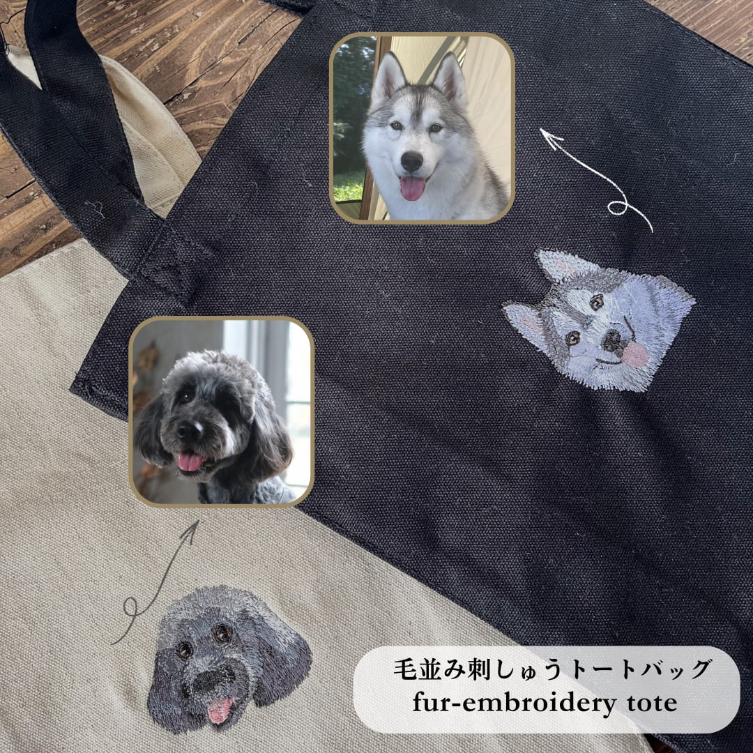 【制作枠受付】お気に入りのお写真から作る毛並み刺しゅう【A4トートバック】写真から作るペット刺しゅう