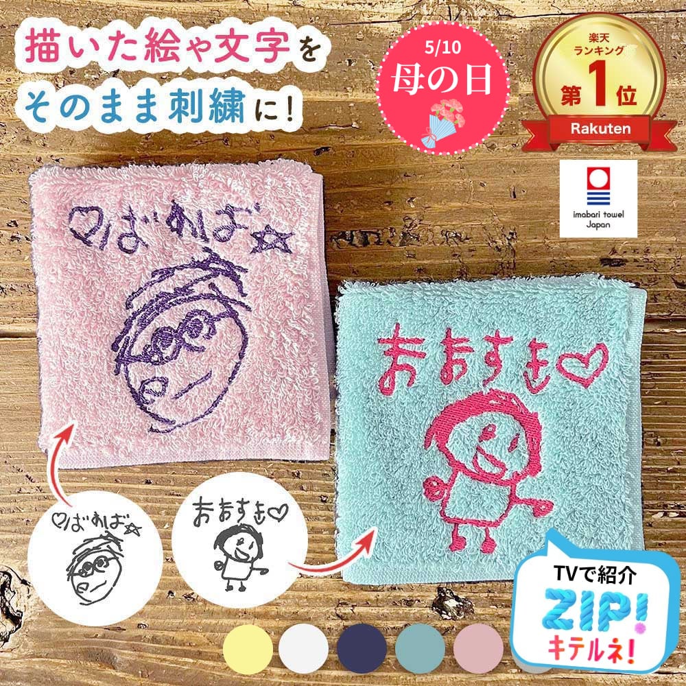 おしゃれで実用的!お子様の絵を刺繍した今治タオルの2枚セットです。お子さまの想いを形にした特別なタオルは、贈り物に最適です。喜寿、古希、還暦といったお祝い事はもちろん、敬老の日や誕生日プレゼントにも最適なギフトアイテムです!
